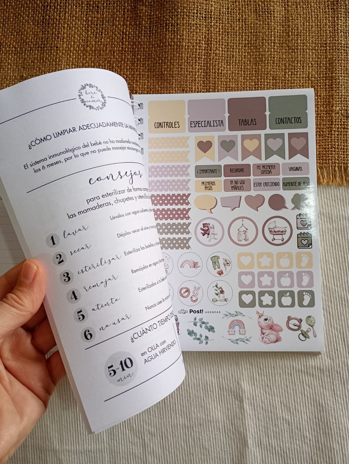 Super práctica y hermosa agenda pediátrica. Con stickers marcadores de datos importantes. Para anotar y que luego te quede de recuerdo todos los primeros datos de tu bebé y para llevar a las primeras consultas con el pediatra, aquí anotaras sus recomendaciones, por ejemplo, en sus cuidados y alimentación.