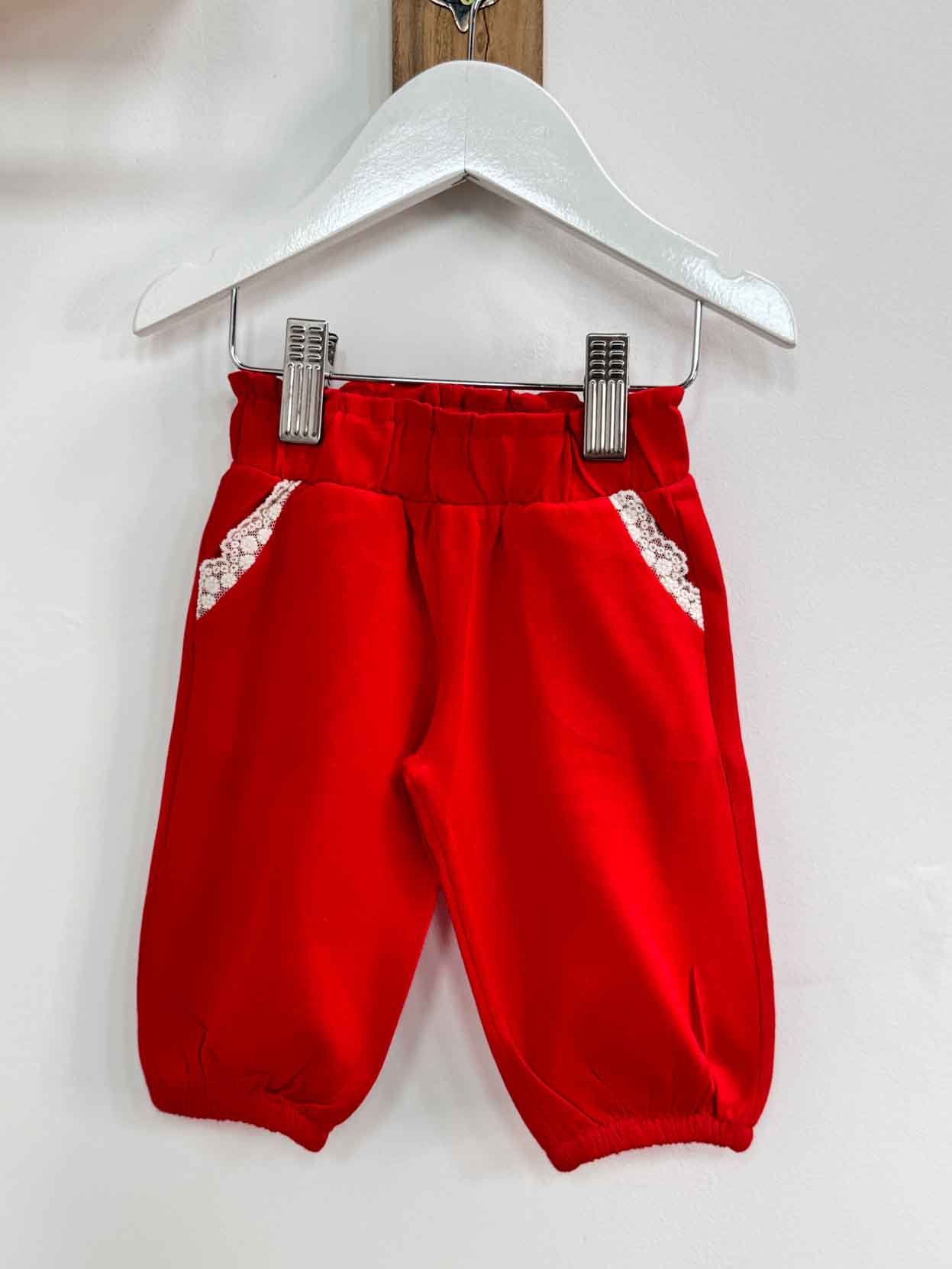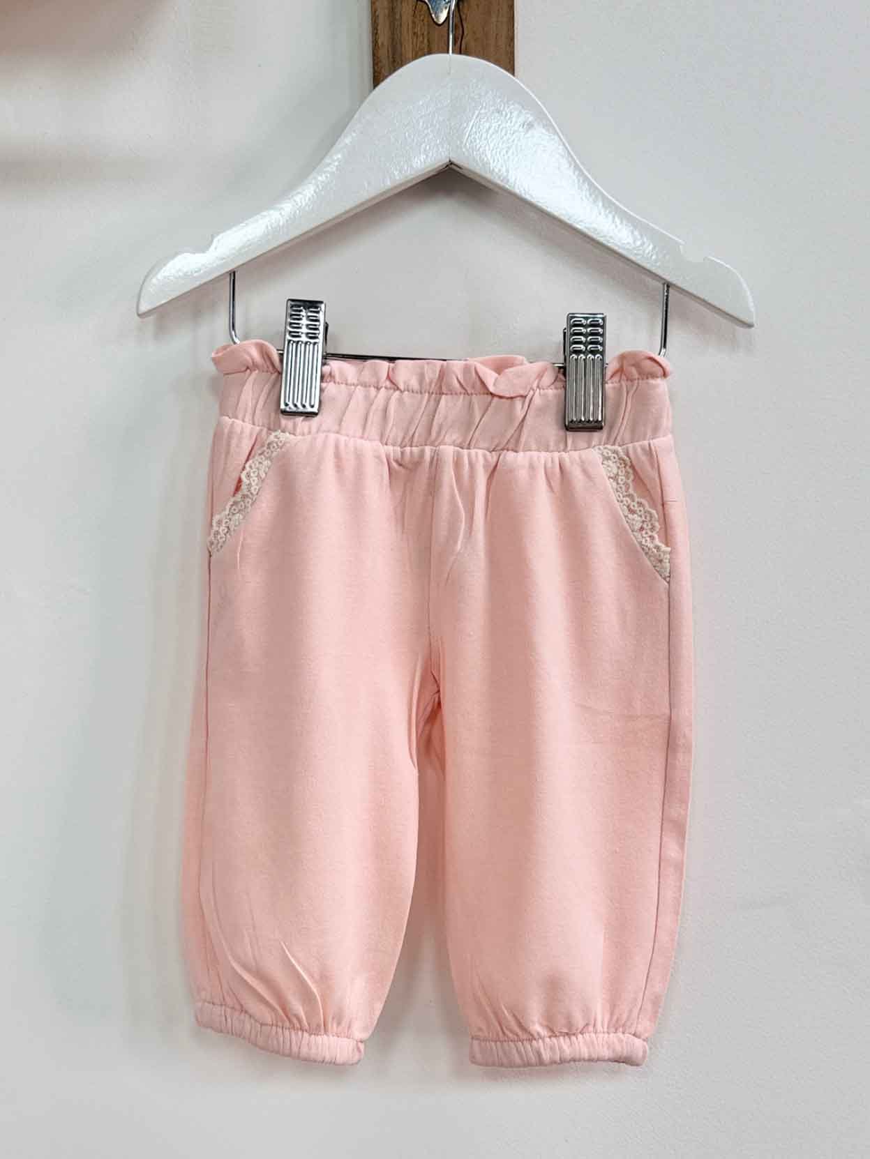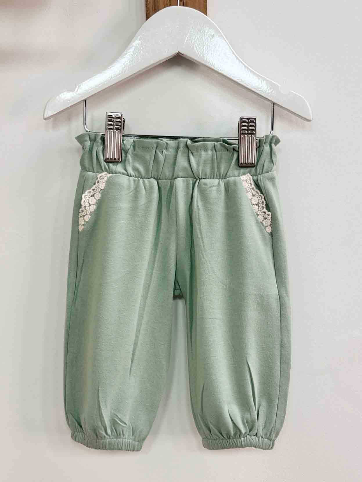 Este modelito lleva unos delicados bolsillos en los costados delanteros con detalle de puntilla de tul, elástico en los tobillos y en la cintura.