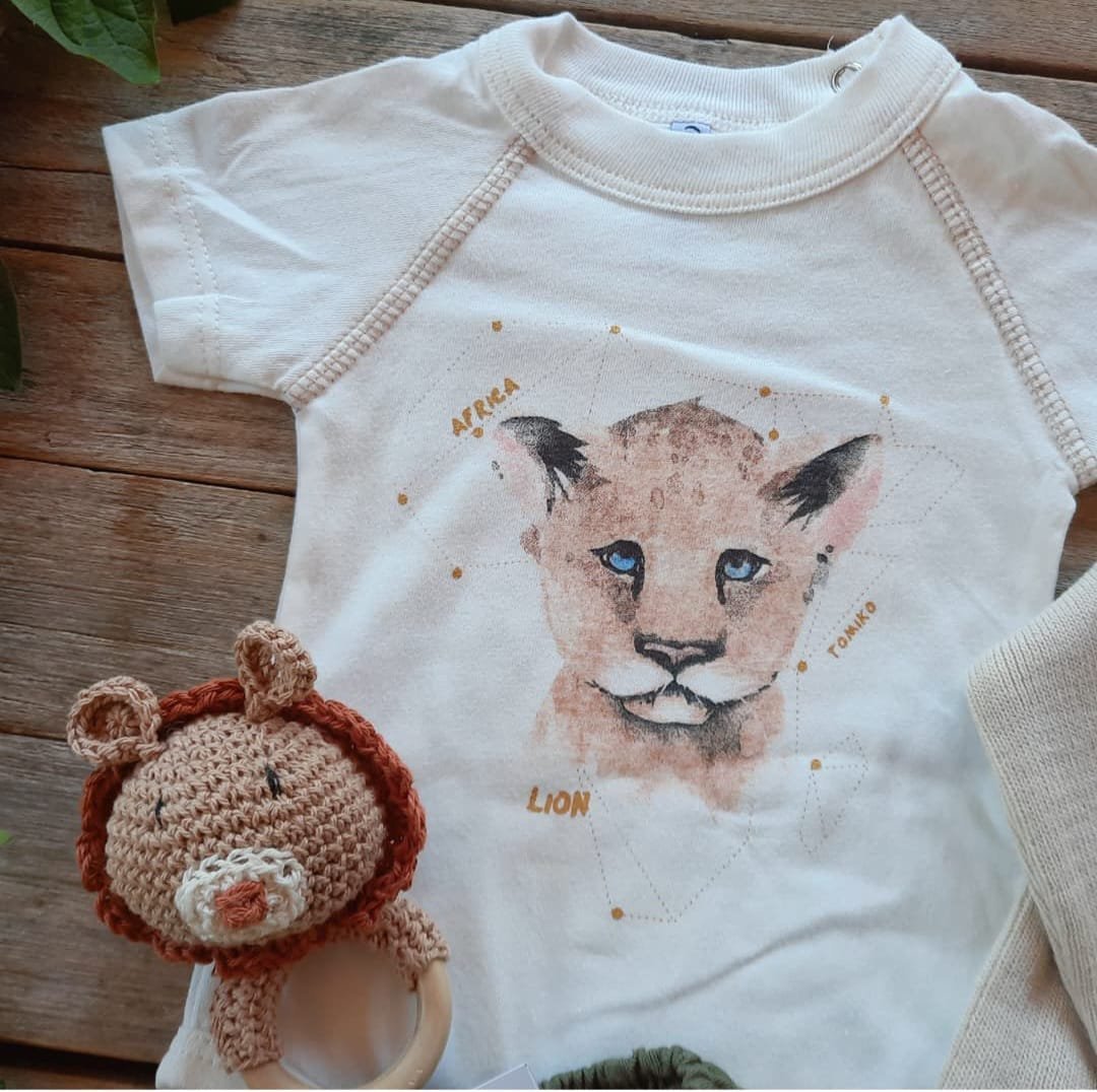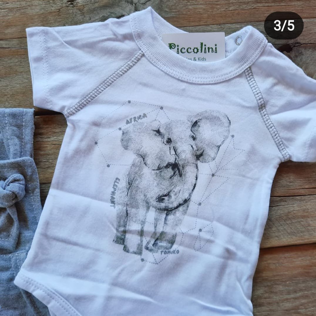 Body de bebé varón confeccionado en jersey de algodón peinado 24/1 con estampa frontal de animales.