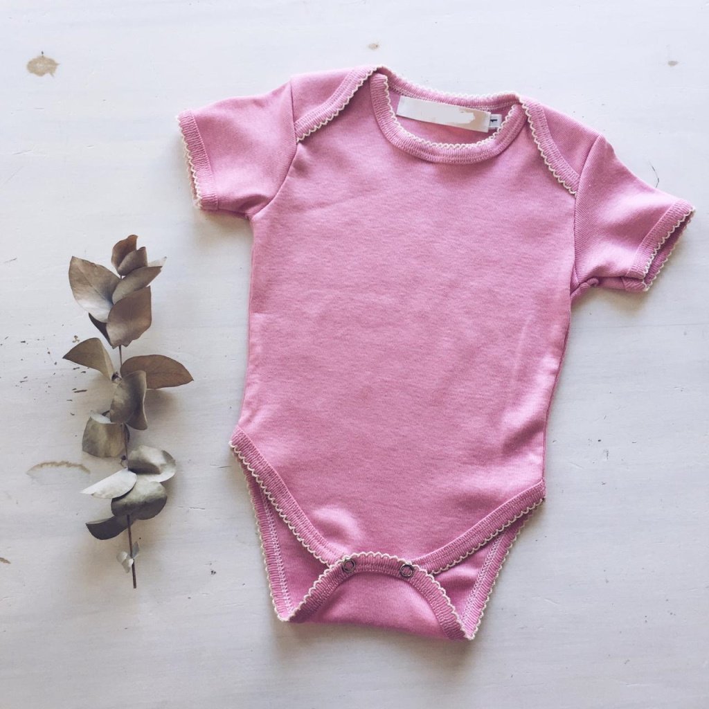 Body hecho en algodón peinado de primera calidad, manga corta terminación en picot y cuello americano.
