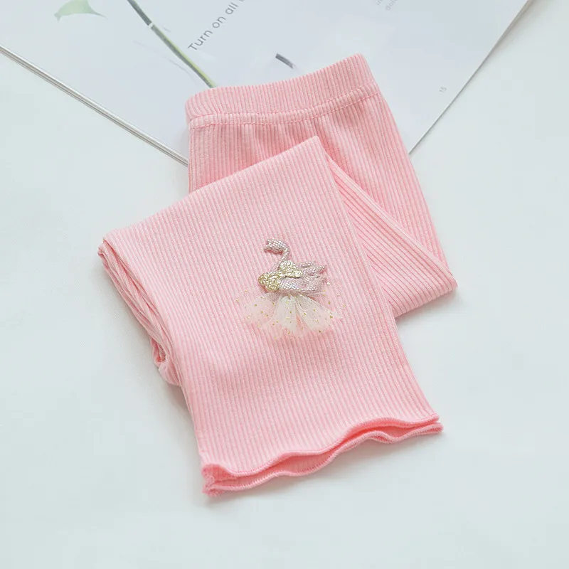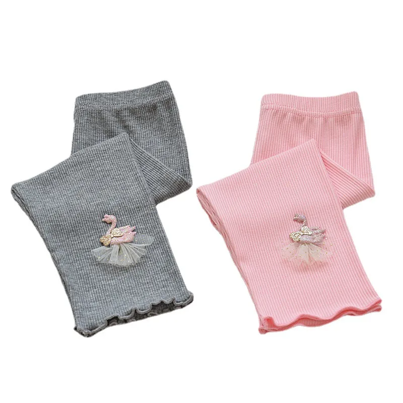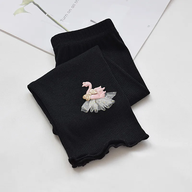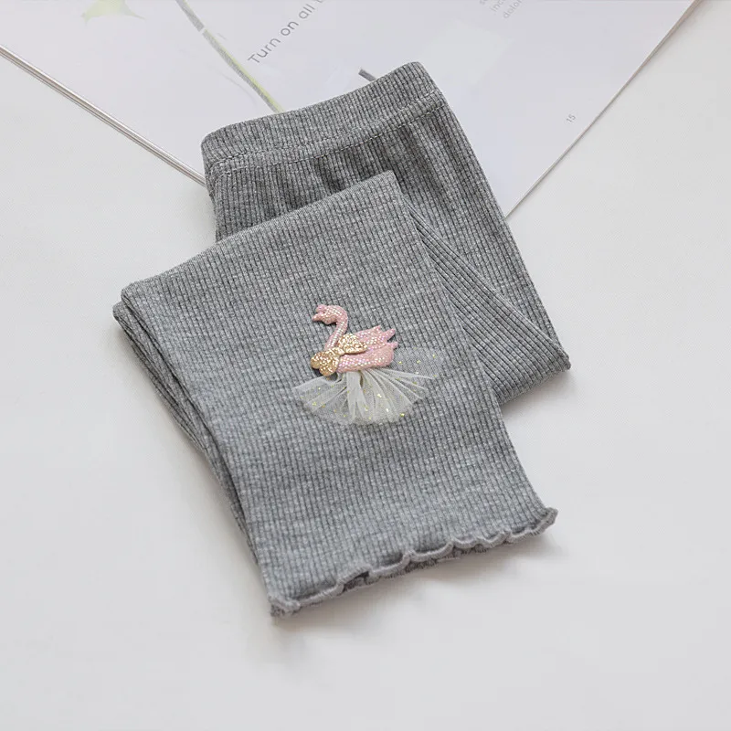 Calza de niña confeccionada en el mejor morley de algodón con detalle de cisne en el tobillo y ruedo ribeteado. Perfectas para usar en media temporada o como segunda piel en invierno.
