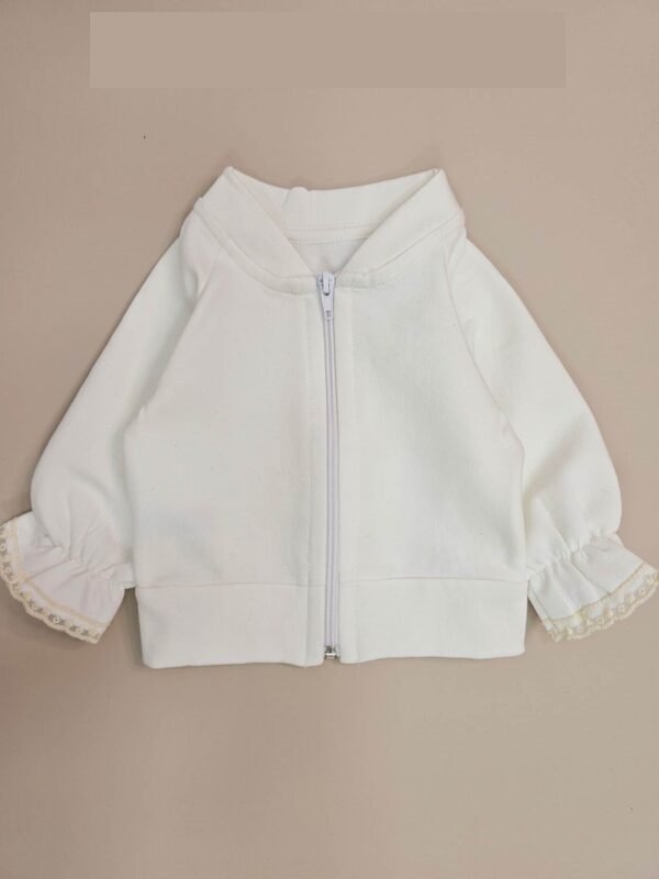 Diseño delicado, con puños en volado con puntilla de algodón, y cierre reforzado al tono.