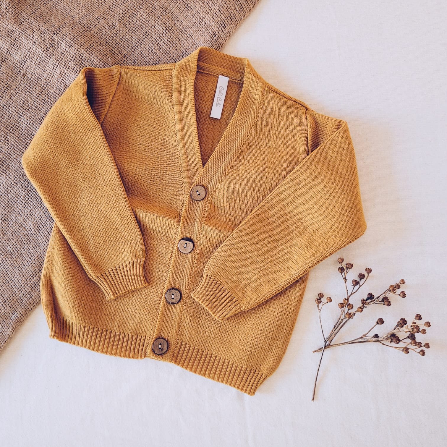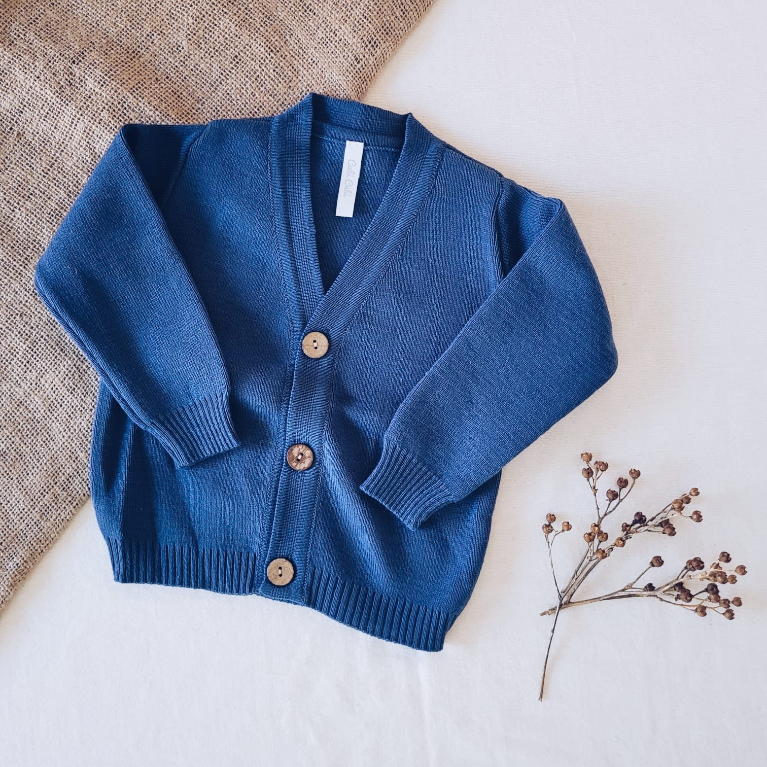 Cardigan de hilo de algodón, unisex, de escote en V y botones de coco.
