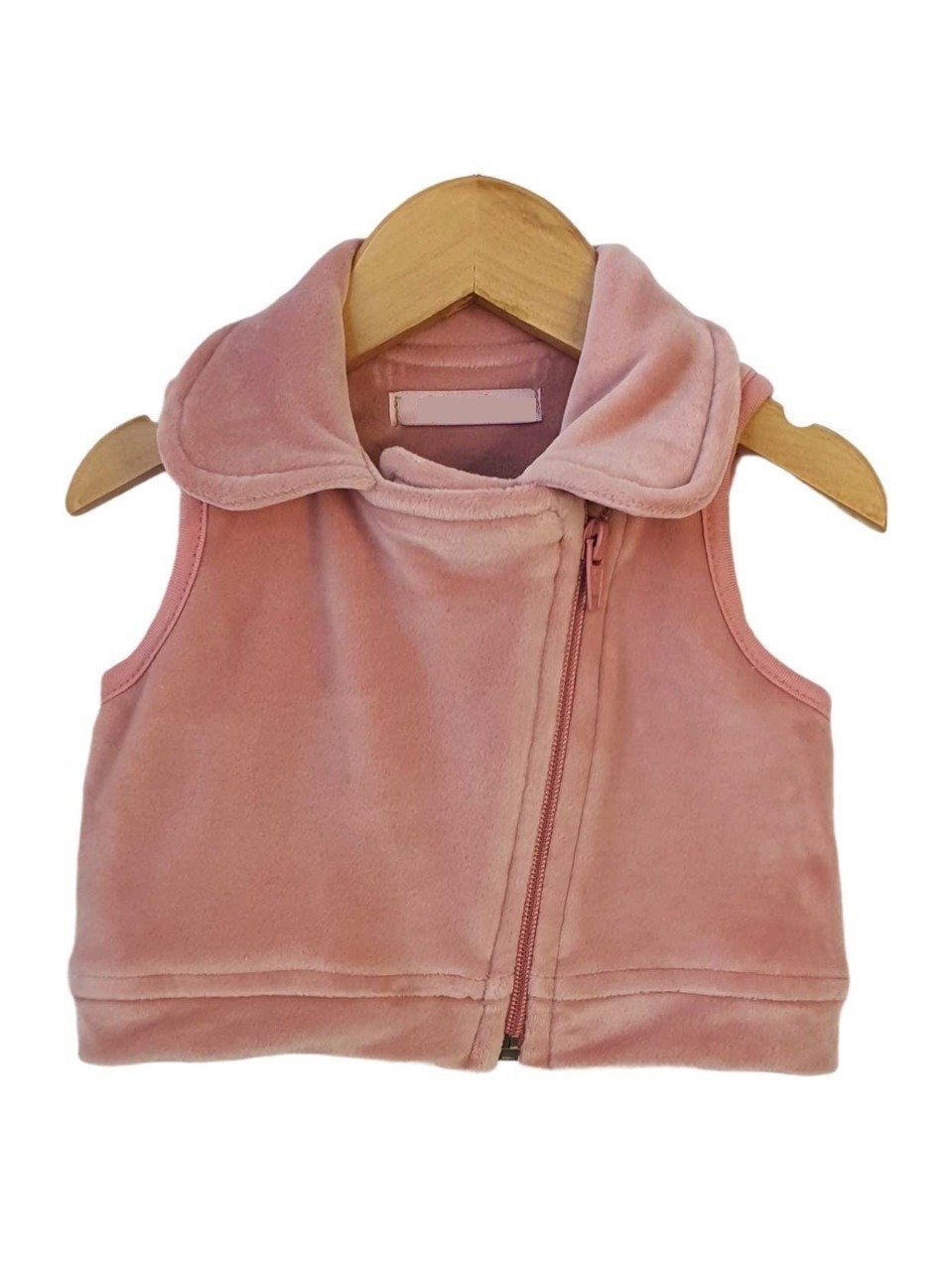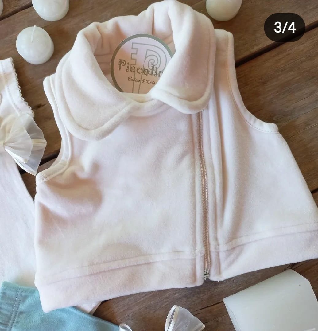 Chaleco de corte moderno con cierre de plástico al tono. Confeccionado en piel plush bi faz.