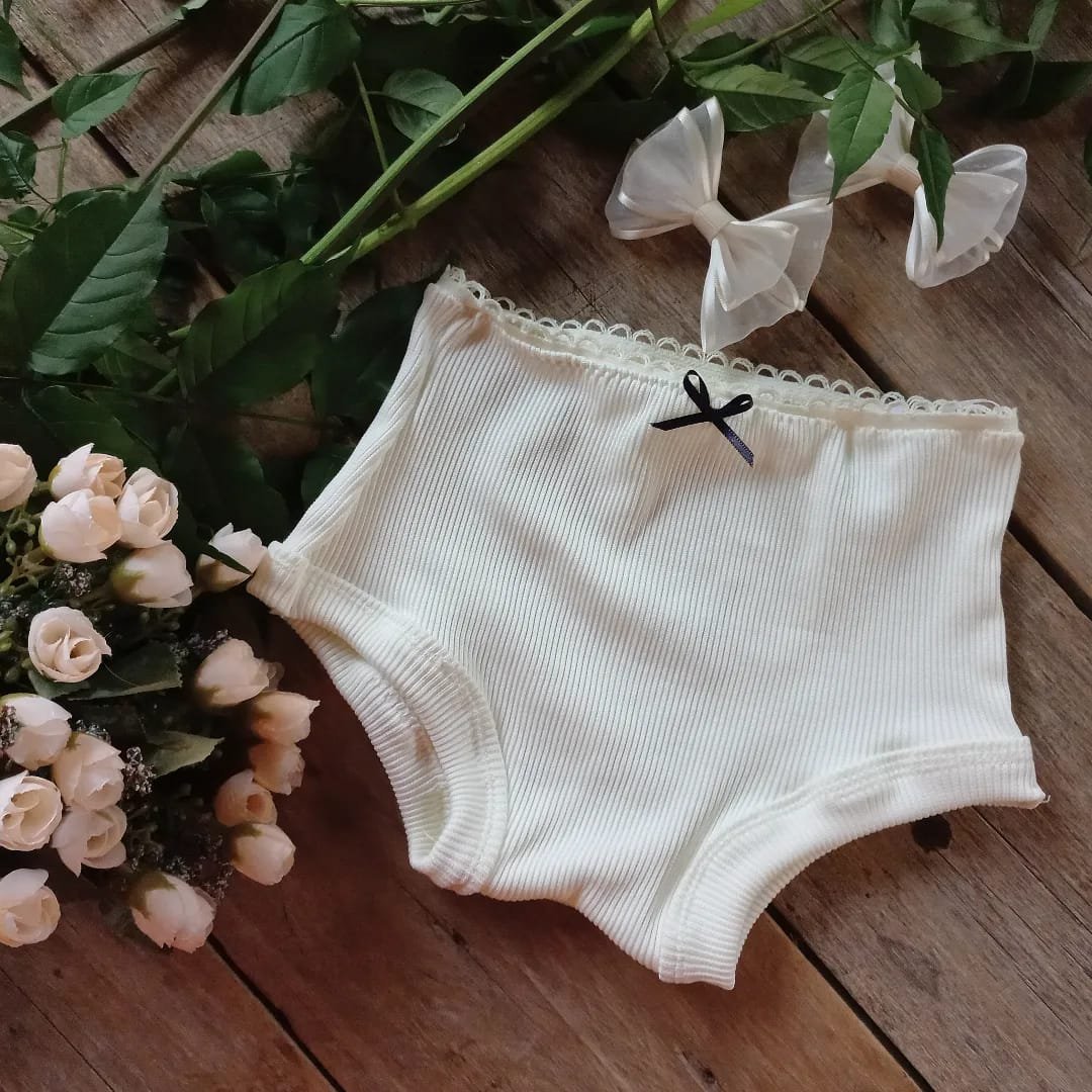 Bombachón cubrepañal confeccionado en morley super suave y elastizado con un detalle de moñito negro que le da un estilo super moderno . Super delicada, esta prenda está hecha a mano lo que le da una terminación de primera calidad.