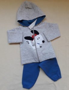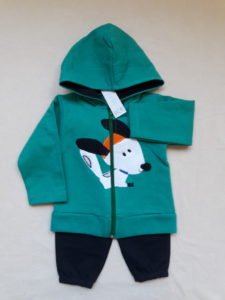 Hermoso conjunto para bebé confeccionado en algodón frizado, compuesto por camperita con capucha con cierre y jogguing.