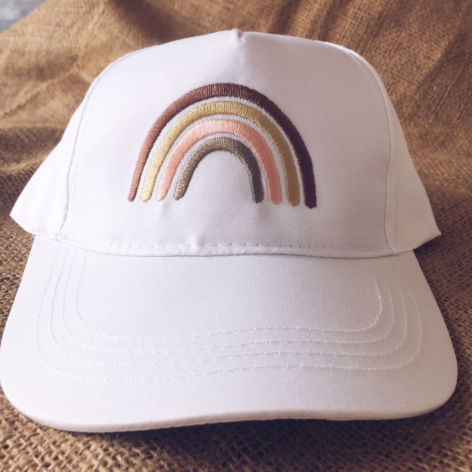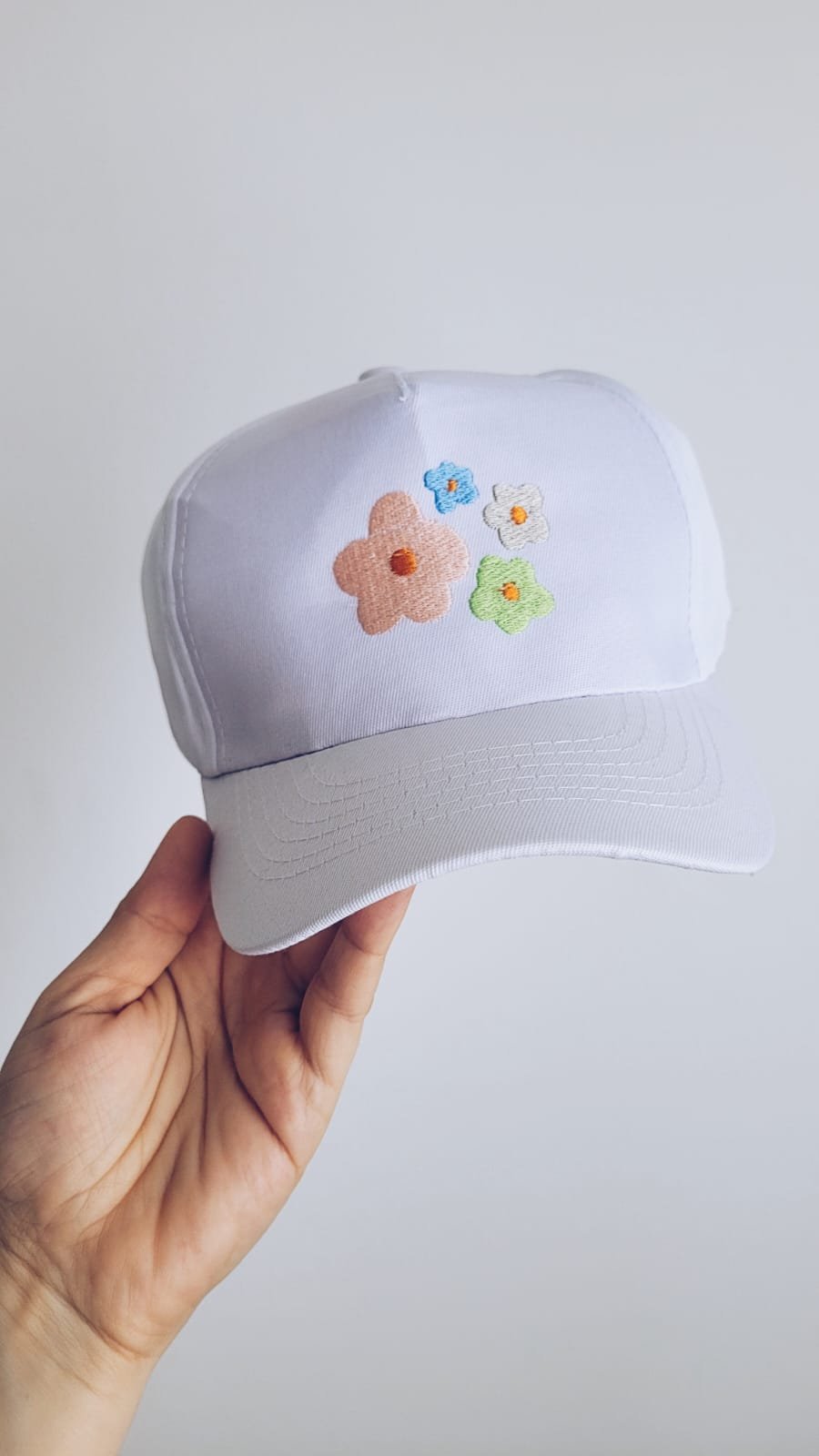 Gorritas confeccionadas en gabardina de algodón, con detalle bordado y abrojo para regular por detras. Vienen en talle único que abarca de 1 a 8 años aprox.