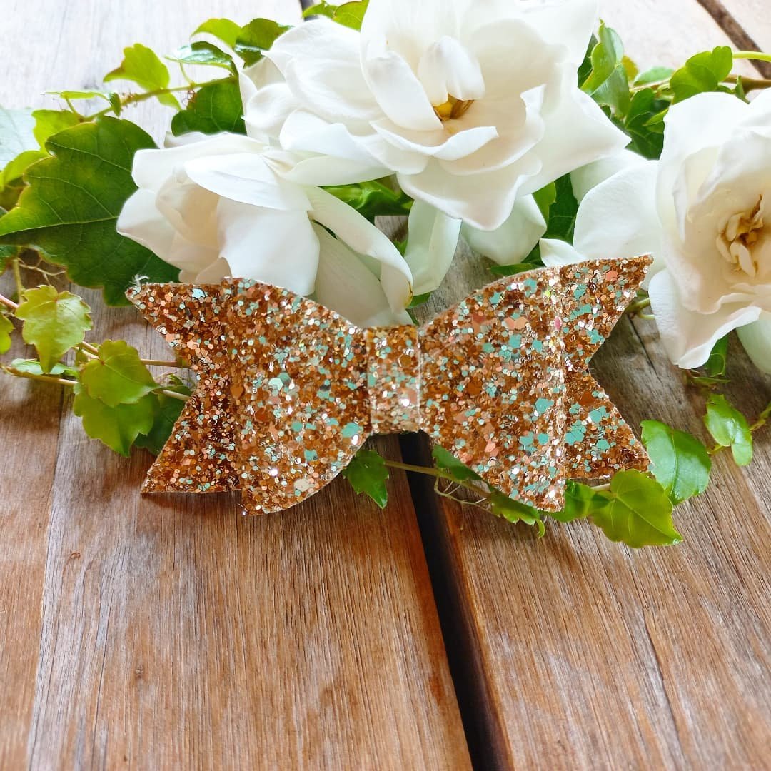 Hebilla estilo piquito o boca de cocodrilo. De 7cm. Los brillos no se despegan.