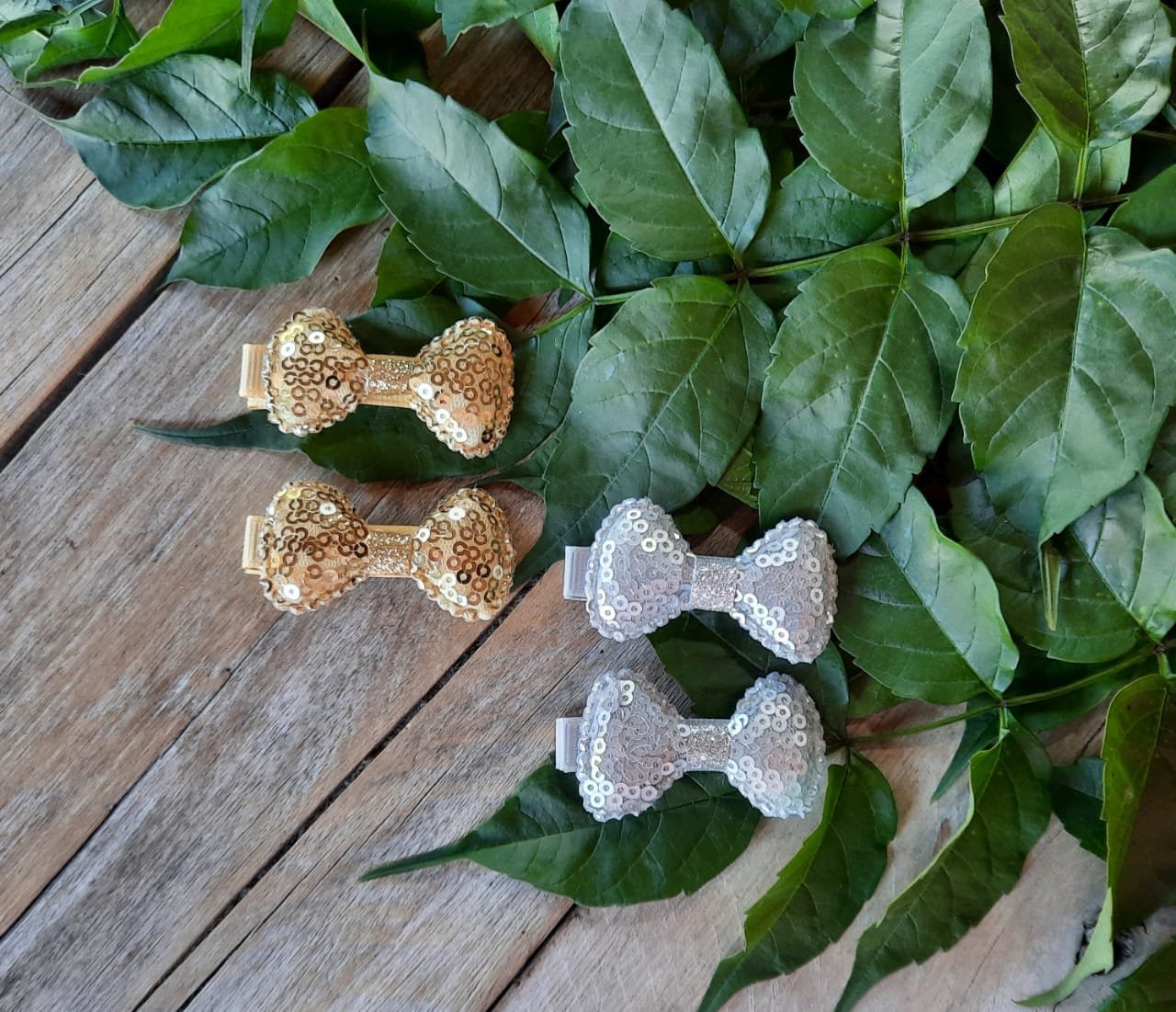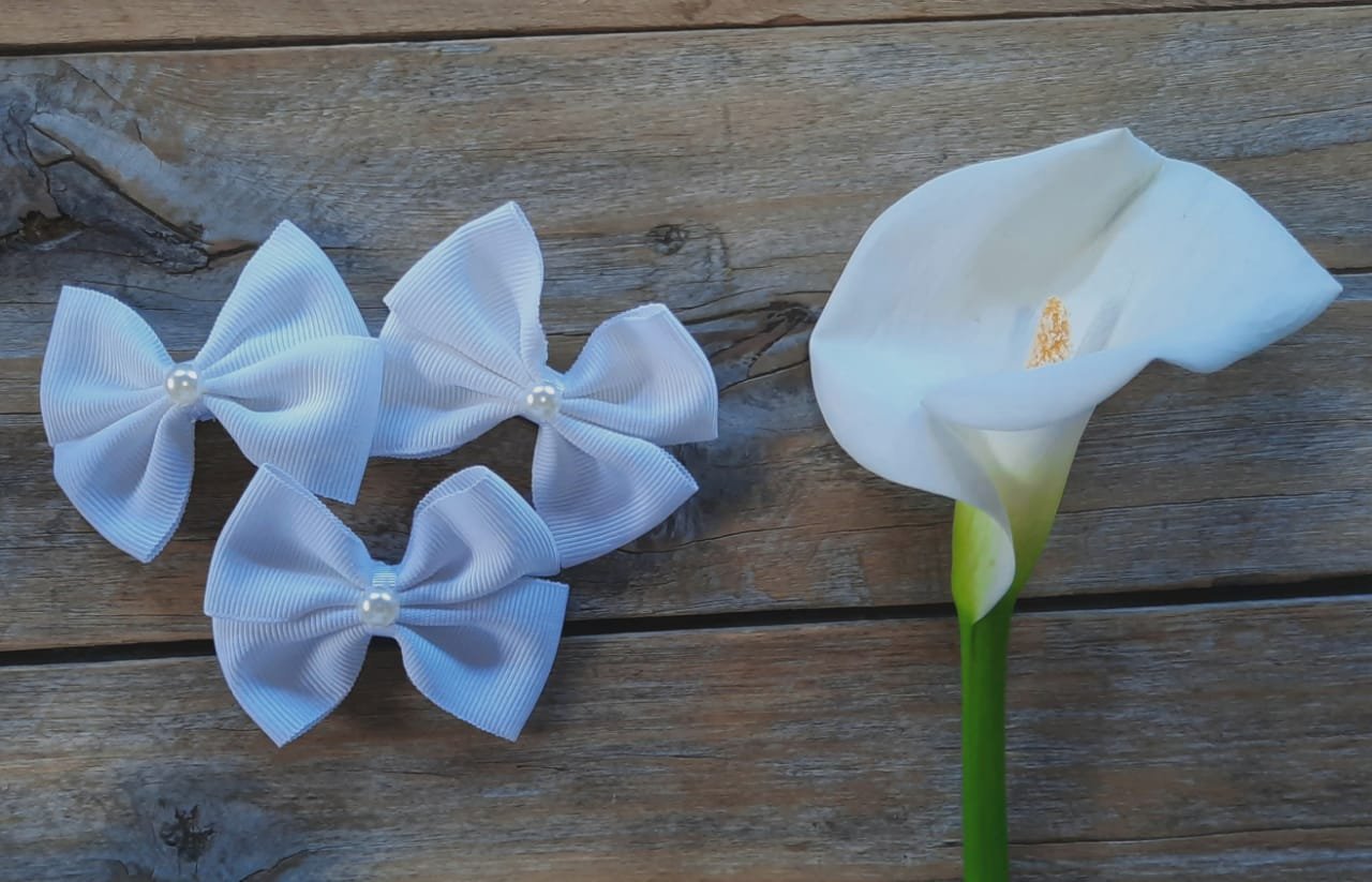 Moño rosa con brillos, Moño blanco con perla, Moño doble rojo, Moño doble blanco, Lentejuelas doradas, Lentejuelas plateadas, Flores, Moño Manteca, Moño Rosa Bebé