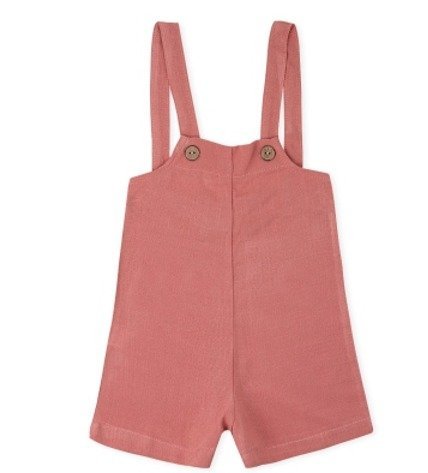 Enterito unisex de pierna corta, confeccionado en el más suave lino de algodón con botones de madera y frunce atrás.