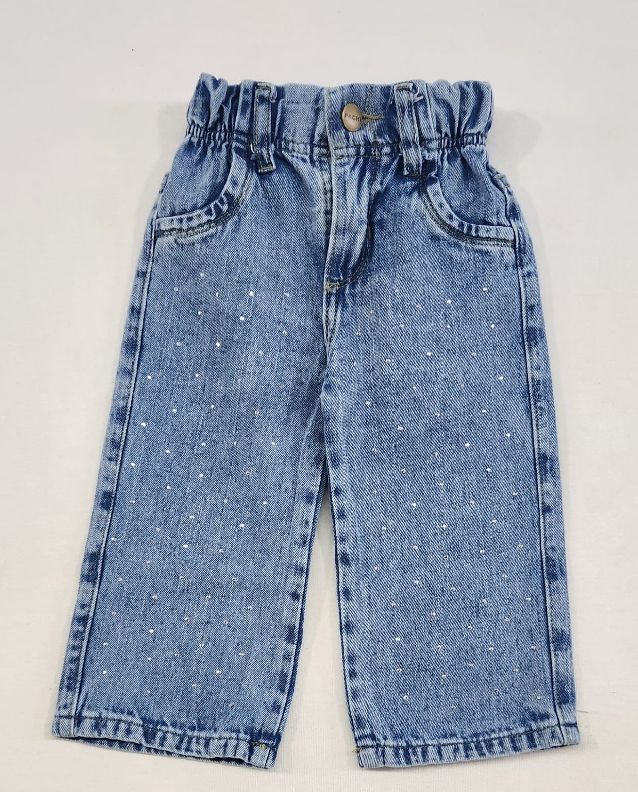 Jean wide de nena con cintura elastizada y aplique de brillos.