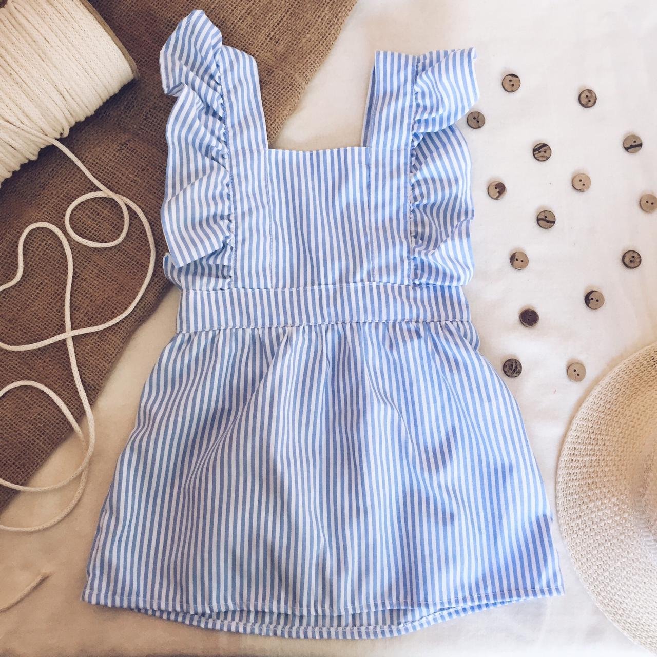 Jumper de poplin con breteles regulables que se atan en la espalda. Deja la espalda semi descubierta lo que lo hace comodo para usar en días de calor y adaptar con una remerita debajo para climas mas frescos.