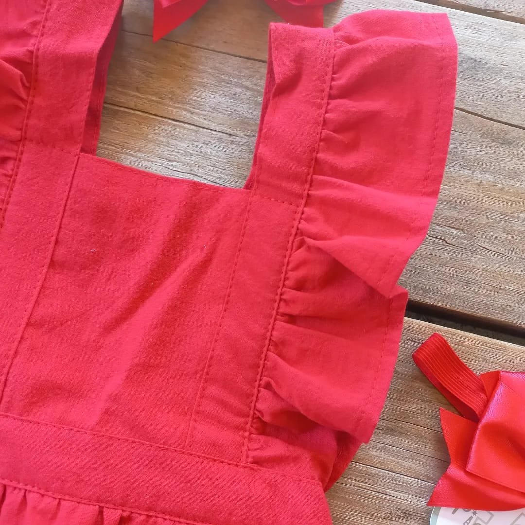 Jumper confeccionado en batista de algodón con volados en los breteles que son regulables al atarse por la espalda. Modelito entallado se puede usar sin nada abajo o convertirlo en media estación colocando una remerita por debajo.