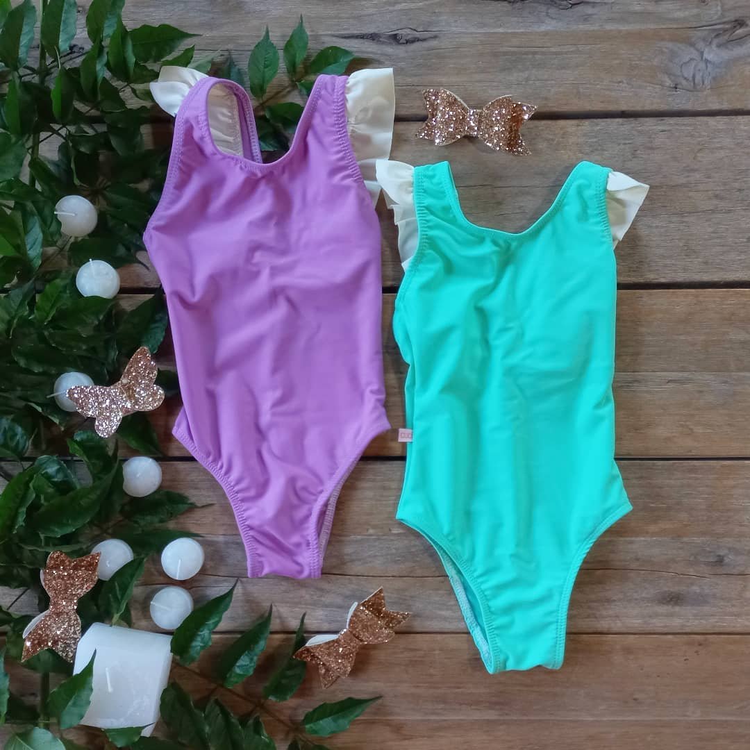 Mallas de nena confeccionadas en algodón con lycra de primera calidad. Este modelito viene von voladitos de lycra en los breteles.