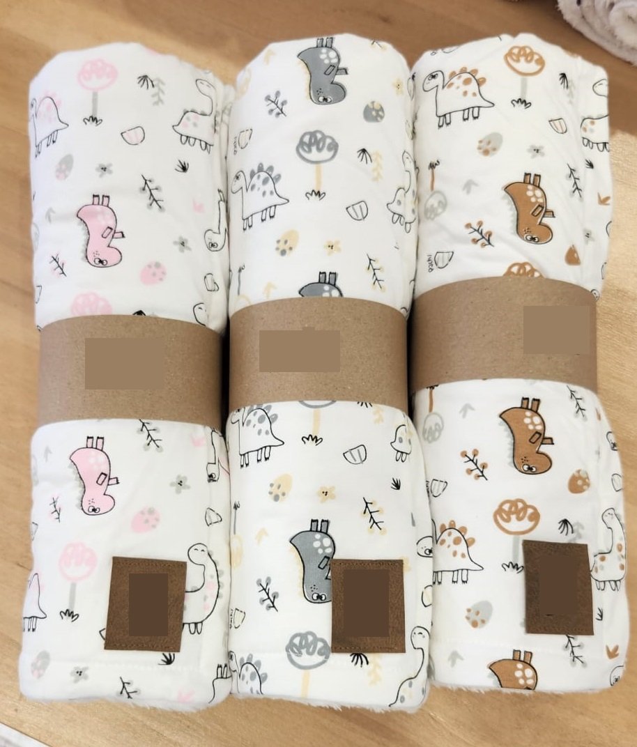 Manta confeccionada en corderito forrado en algodón estampado con motivo de dinosaurios. Tamaño 1m X 0,80m