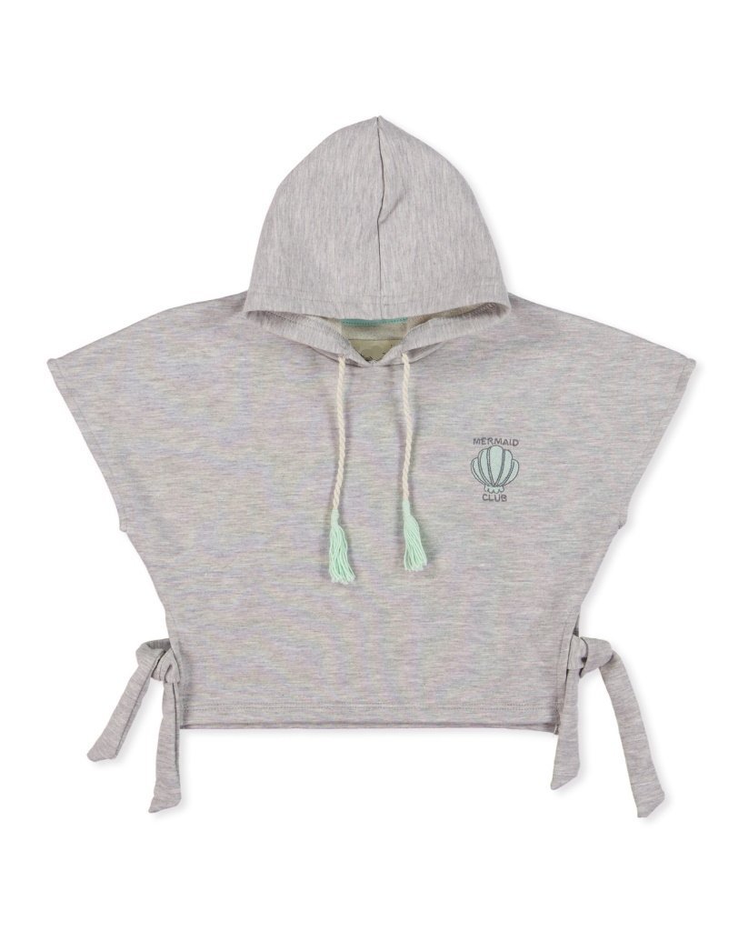 Remerón estilo ponchito, de algodón rústico, con estampa y capucha.