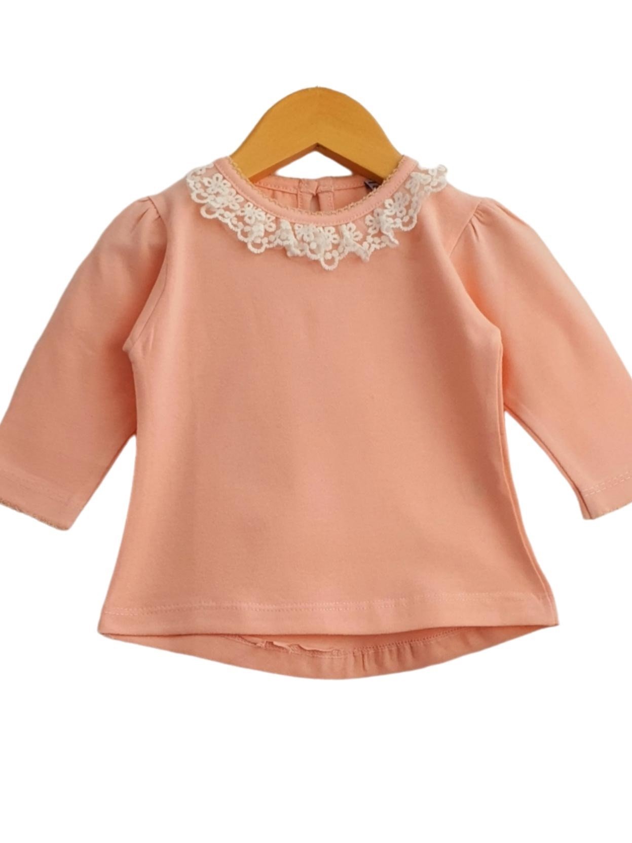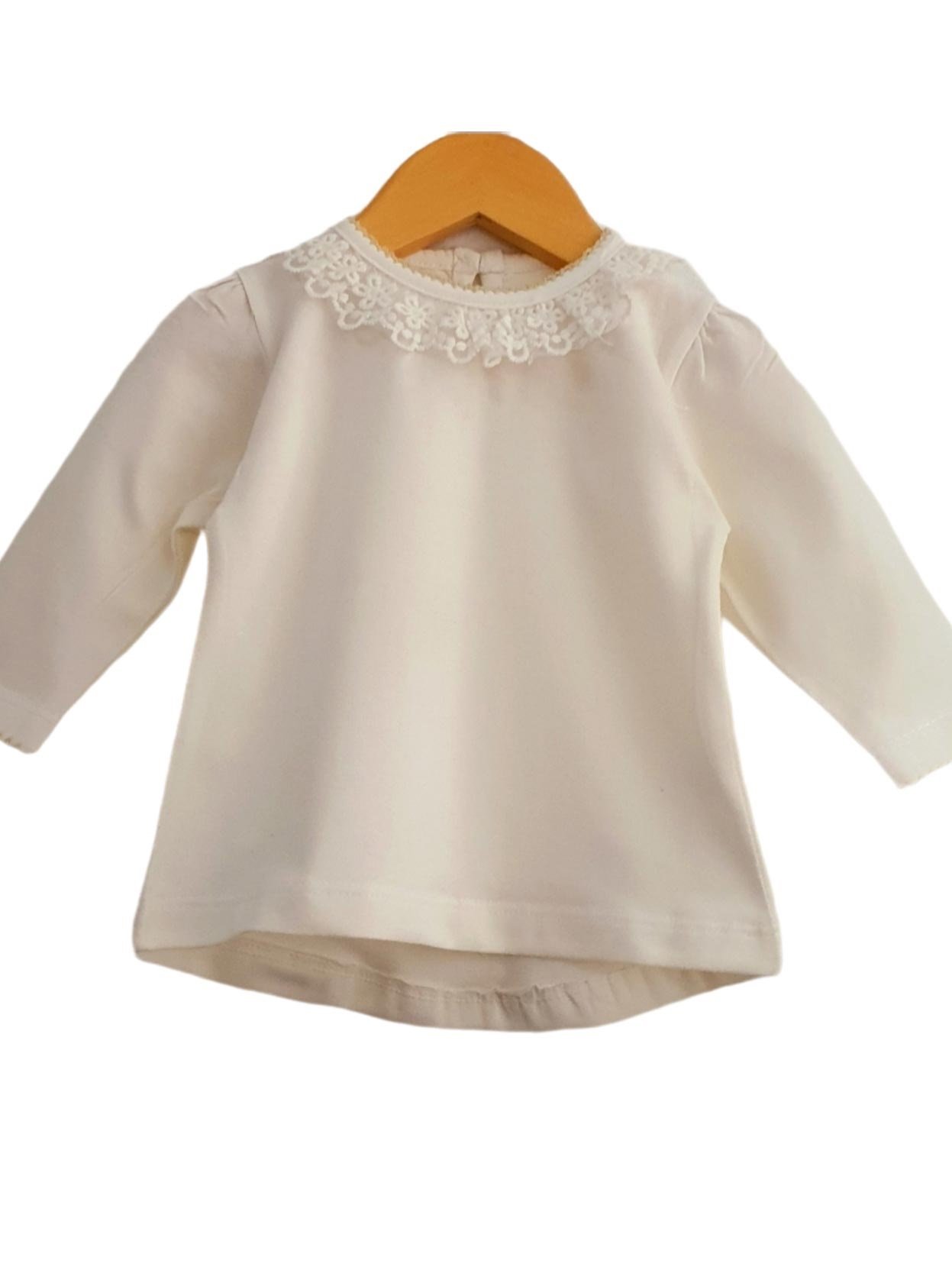 Remera Manga Larga Con Cuellito de Broderie