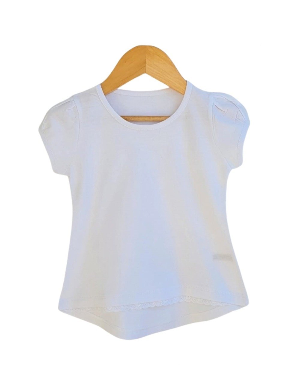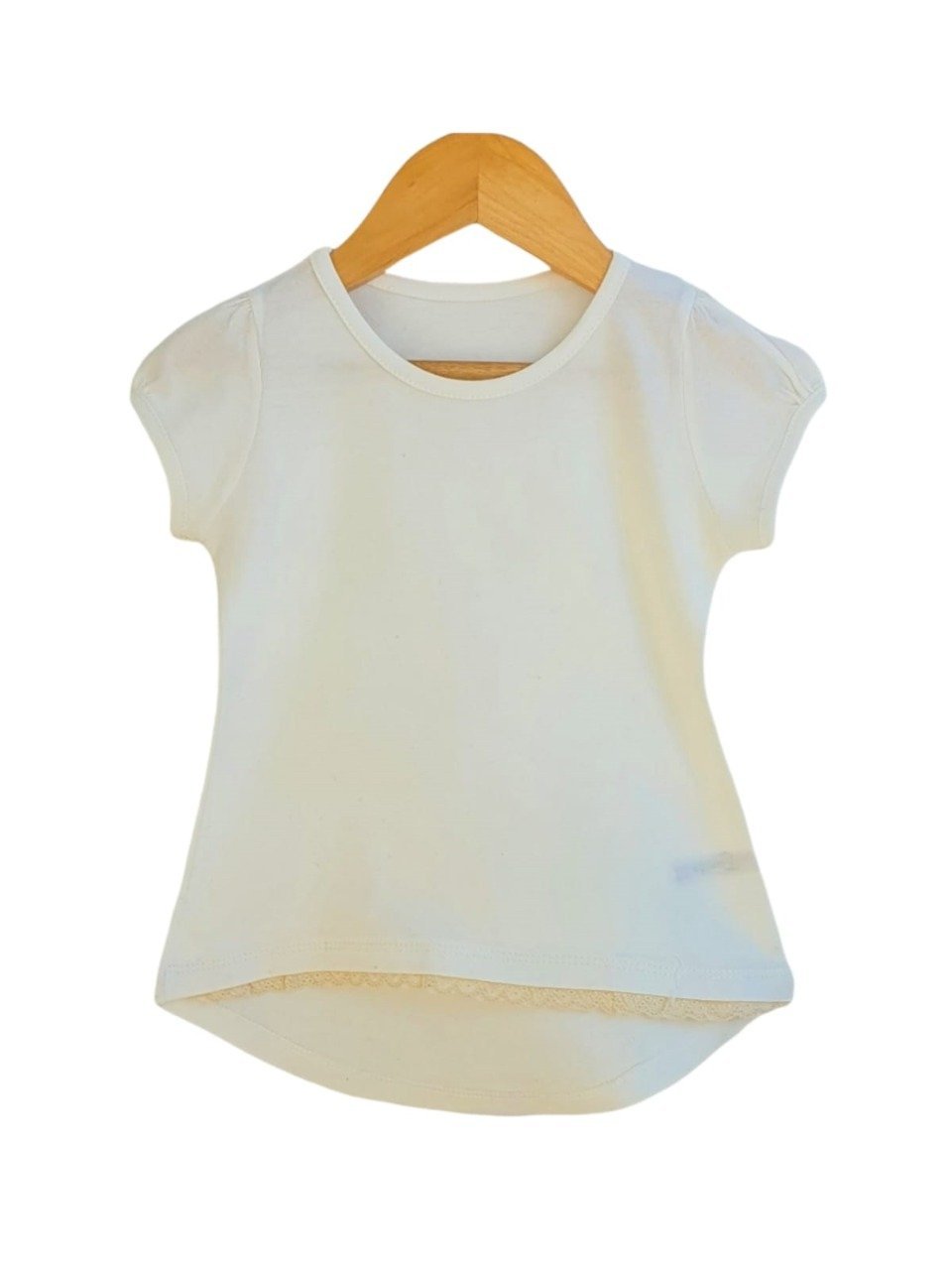 Hermosa remerita talle desde 3 a 6 años confeccionada en jersey de algodón peinado 24/1 lisa con manguita princesa y detalle de puntilla en el ruedo.