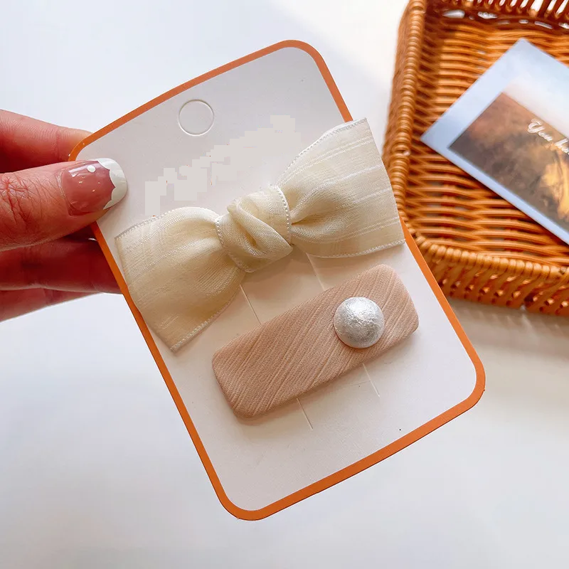 Delicadas hebillas tipo horquilla y clip, con arco de malla y apliques de tela. Estilo elegante.