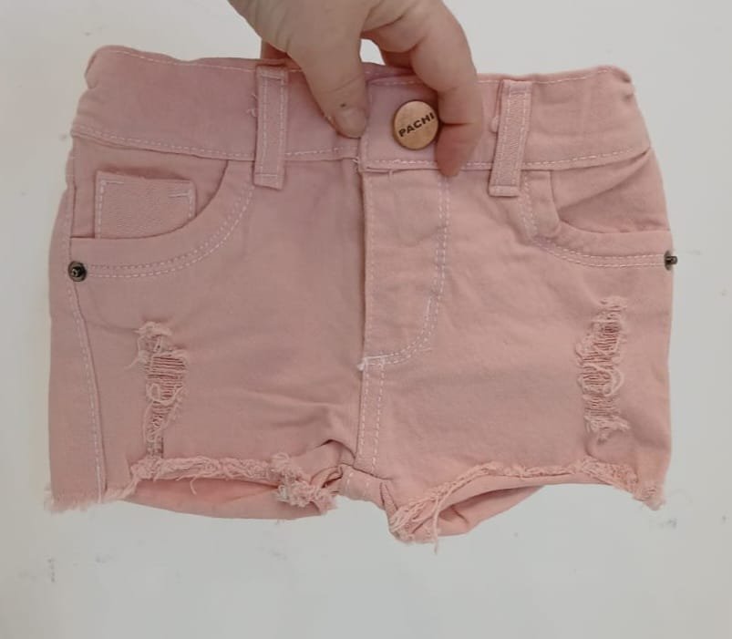 Short de jean rosa con cintura elastizada y roturas en el frente