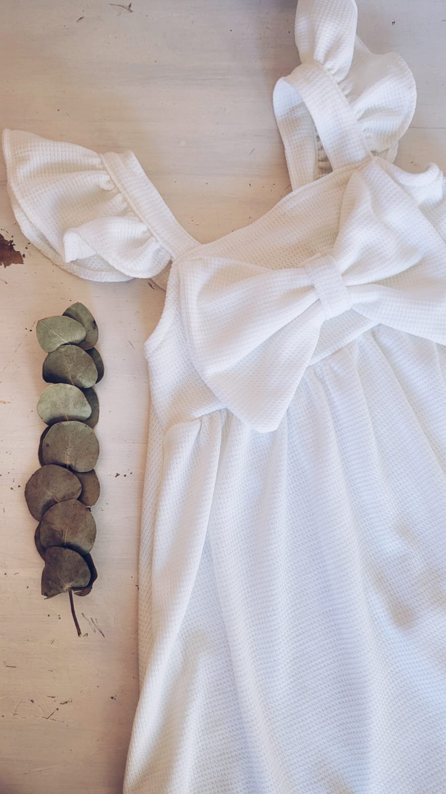 Vestido confeccionado en algodón punto panal, con corte princesa y moño en el pecho, también tiene volados en los breteles que se regulan con un moño o nudo por la espalda. De corte super amplio, en la espalda tiene todo un elástico que lo hace sencillo de vestir y muy sentador.