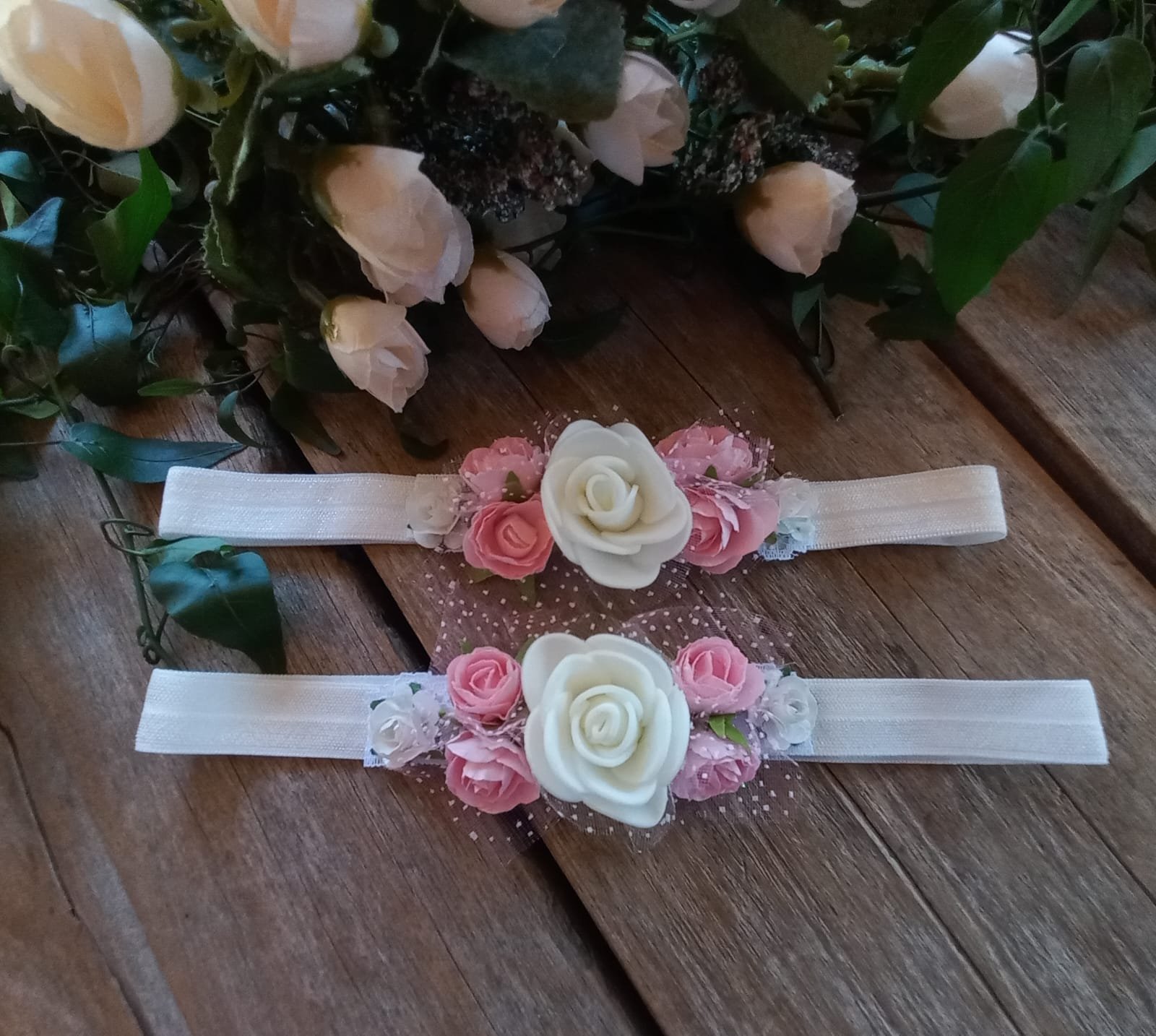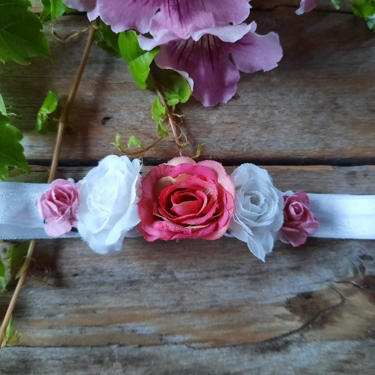 Vincha Para Beba de Elástico con Flores.Vincha Para Beba de Elástico con Flores.