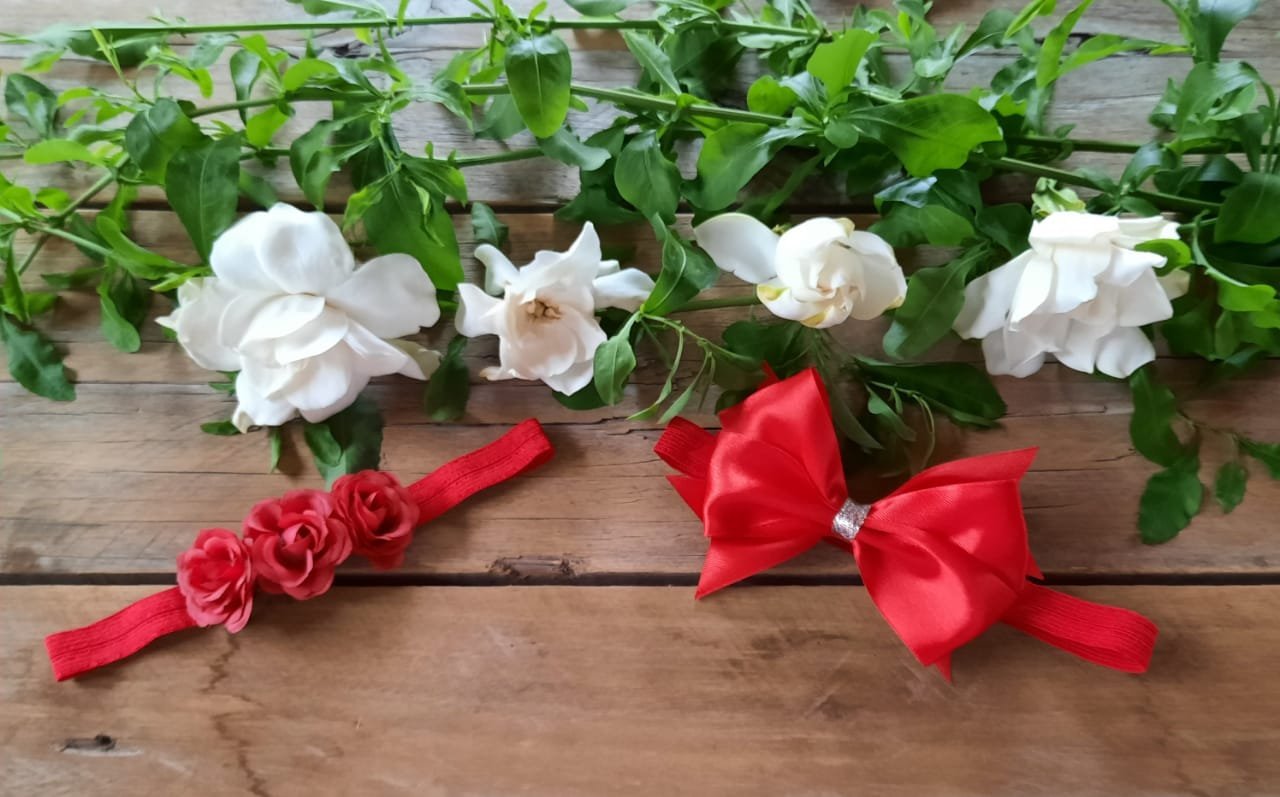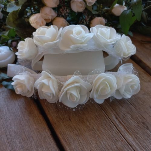 Blancas con perla, Rojas con perla, Blancas, Rojas, Tocado en coral, 3 Flores Durazno, Tocado Durazno, Tocado Blanco, Tocado Manteca, Coronita Manteca, Tocado Rosa Bebé